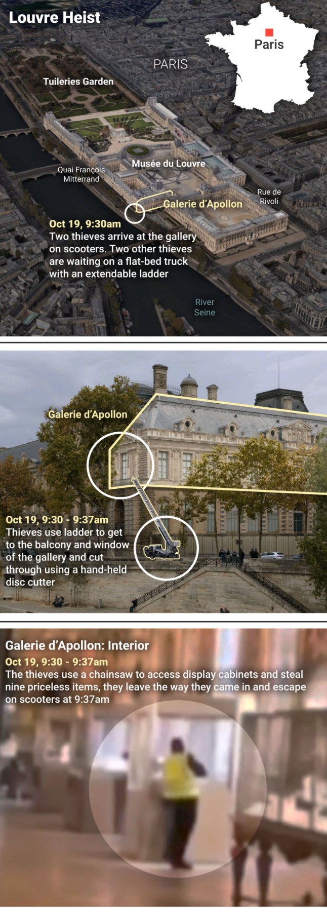 minute by minute, how thieves took priceless jewellery from louvre gallery